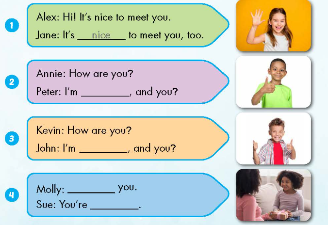1. Alex: Hi! It’s nice to meet you. (Xin chào! rất vui khi được gặp bạn.)
