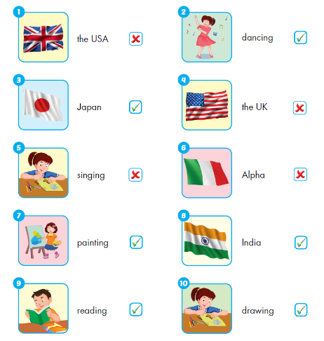 (Nhìn và đọc. Đánh dấu tích hoặc dấu gạch chéo.)