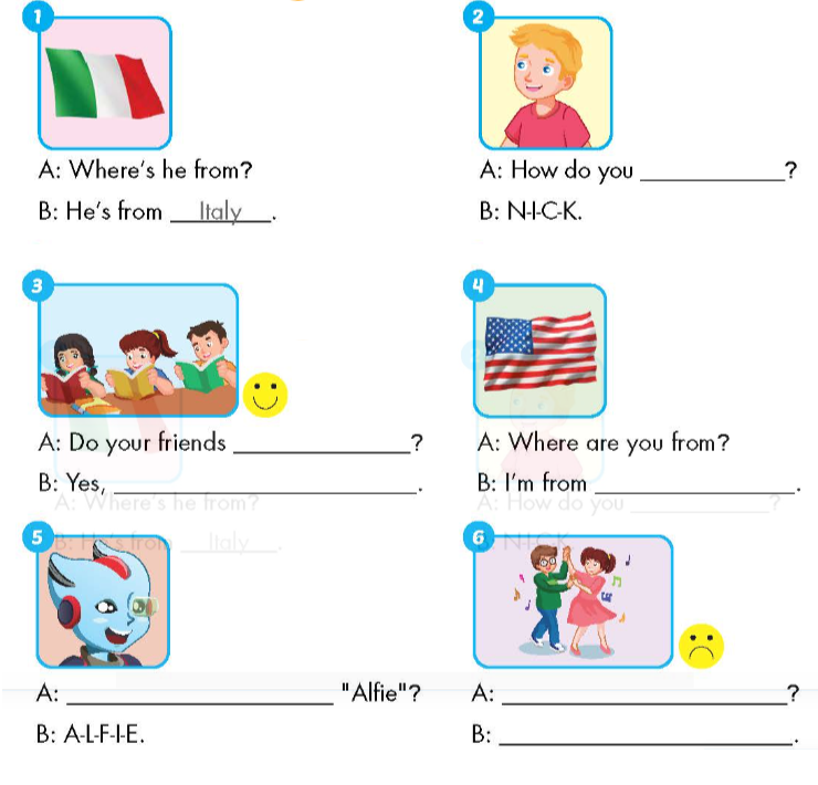5. A:How do you spell “Alfie”? (Bạn có thể đánh vần “Alfie” không?)