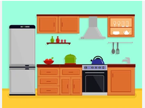 4. There is a cupboard in the kitchen. (Có một chiếc tủ đựng đồ ở trong phòng bếp.)