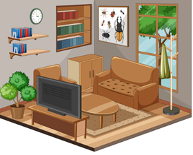 1. There is a lamp in the living room. (Có một cái đèn trong phòng khách.)