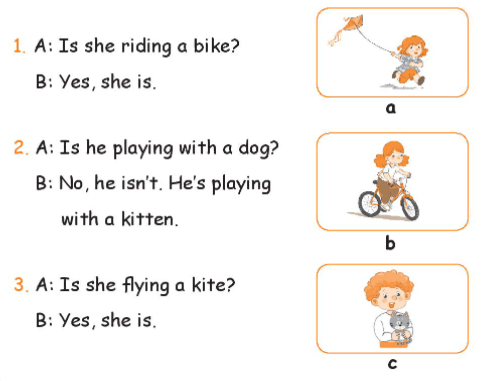 (Không,cô ấy không chơi với chó. Cô ấy đang chơi với mèo con.)