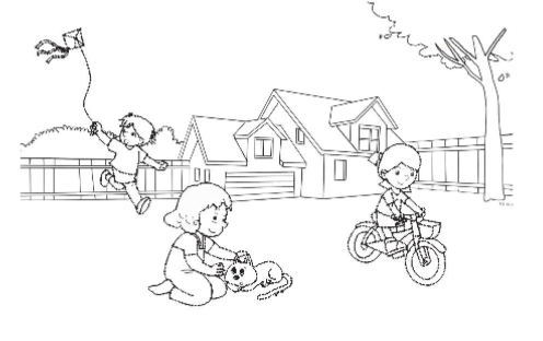 7. Project: Trace and colour the picture. Tell your friends what the people are doing.
