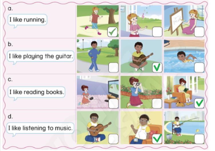 b. I like playing the guitar. (Tôi thích chơi đàn ghi- ta.)