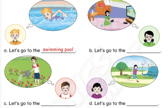 a. Let’s go to the swimming pool. (Hãy đi đến bể bơi.)