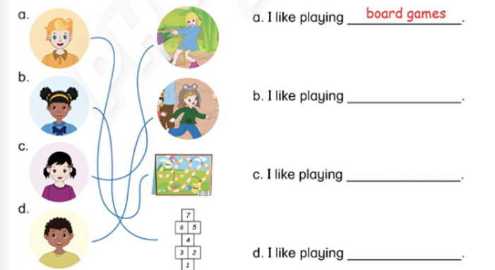 a. I like playing board games. (Tôi thích chơi trò chơi ô chữ.)