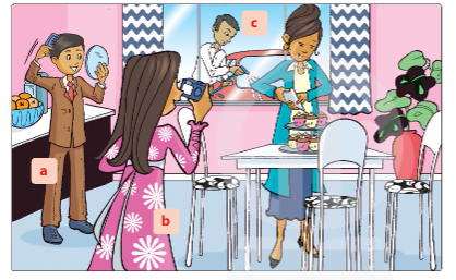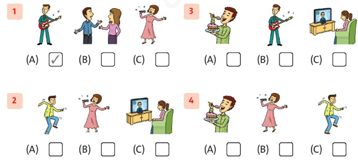 (Khoanh tròn và thứ mà bạn có thể nhìn thấy mọi người làm ở một bữa tiệc.)