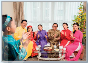 3. Her family has a party at Tet. (Gia đình của cô ấy có một bữa tiệc và dijp Tết.)