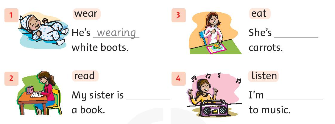 2. My sister is reading a book. (Chị gái của tôi đang đọc một cuốn sách.)