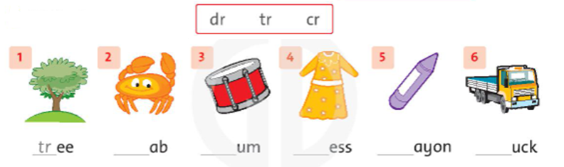 (Viết các chữ cái còn thiếu. Đọc các từ.)