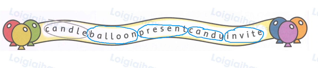 (Tìm và khoanh tròn các từ.)