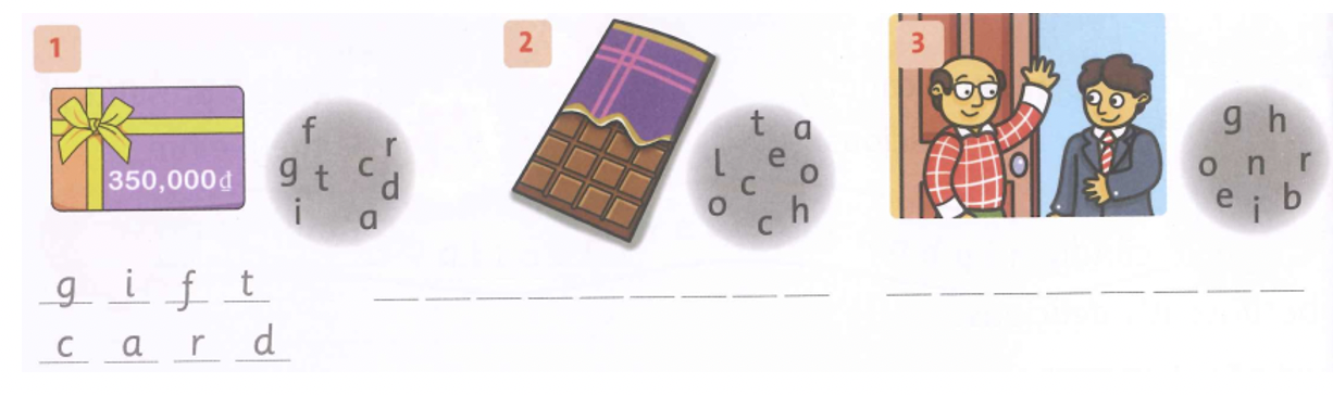 1. Look at the picture and the letters. Write the word.