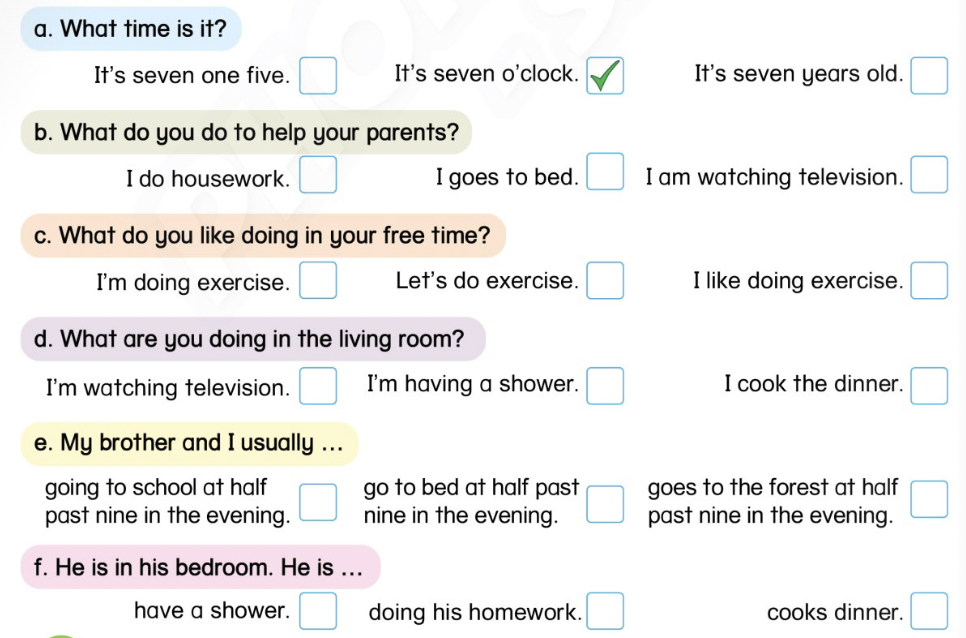(Nghe và tick.)