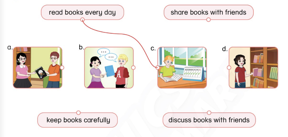 discuss books with friends: bàn luận về sách cùng bạn