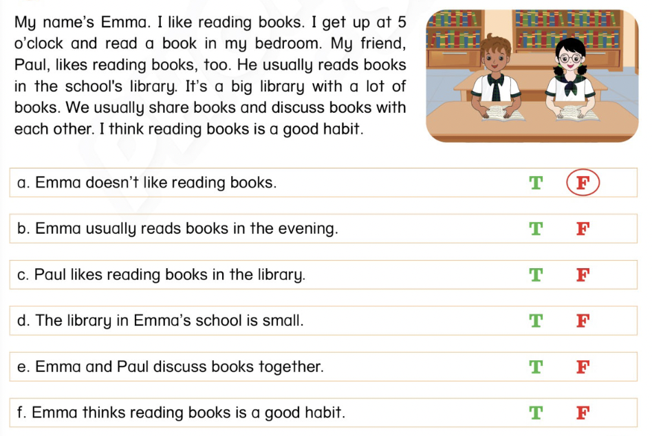 f. Emma nghĩ đọc sách là một thói quen tốt.