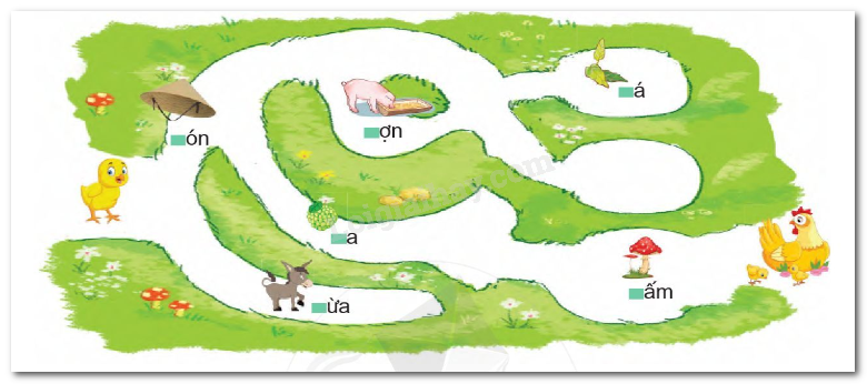 Em quan sát kĩ bức tranh và tìm đường về cho gà con bằng cách điền chữ l và n vào ô trống phù hợp.