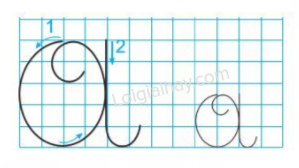 – Nét 1: Đặt bút trên đường kẻ 6. Đưa bút sang trái viết nét cong kín. Phần cuối nét lượn vào trong bụng chữ đến đường kẻ 4 thì lượn lên một chút rồi dừng bút.