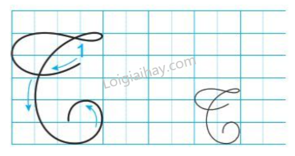 – Nét 2: Từ điểm dừng bút của nét 1. Rê bút lên tới đường kẻ 4 rồi chuyển hướng ngược lại viết nét móc ngược (bên phải). Dừng bút ở đường kẻ 2.