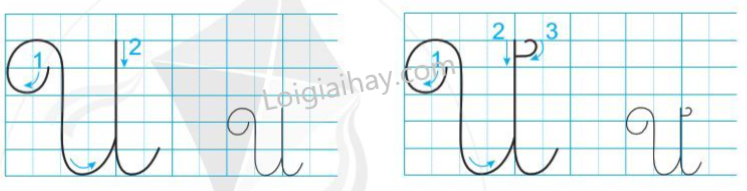 – Nét 2: Từ điểm dừng bút của nét 1. Rê bút thẳng lên đường kẻ 6 rồi chuyển hướng bút ngược lại để viết nét móc ngược phải từ trên xuống. Dừng bút ở đường kẻ 2.