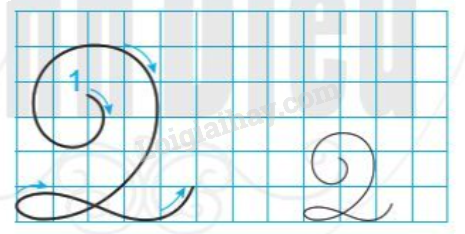 Đặt bút giữa đường kẻ 4 và đường kẻ 5 viết nét cong trái nhỏ đến đường kẻ 6. Viết tiếp nét cong phải (to) xuống tới đường kẻ 1 thì lượn vòng trở lại. Tiếp tục viết nét lượn ngang từ trái sang phải (cắt ngang nét cong phải) tạo vòng xoắn nhỏ ở chân chữ. Dừng bút ở đường kẻ 2.