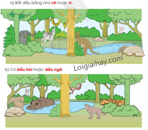 a. Bắt đầu bằng chữ ch hoặc tr: trâu, chồn, trăn.