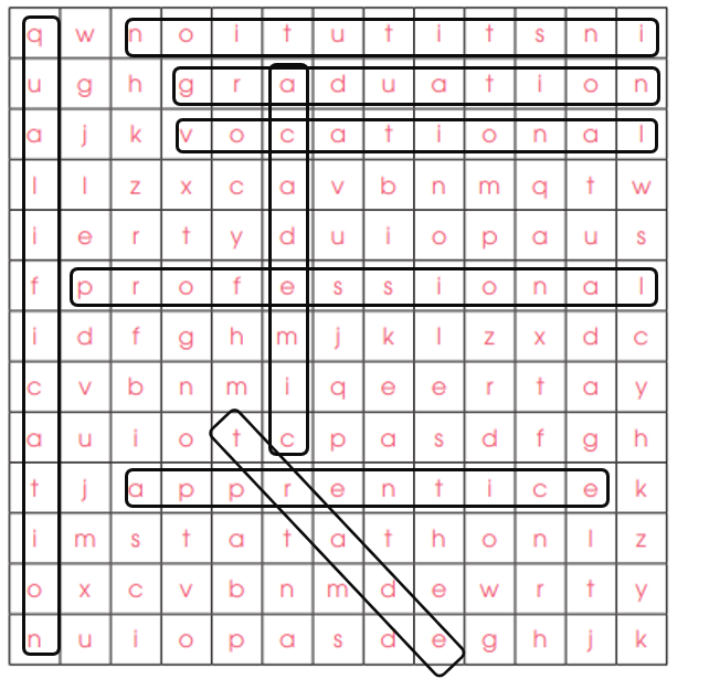 Nowadays, there are many educational opportunities available to school-leavers. If they plan to work in a certain trade, they can go to a (1) __________. These schools will provide training and (2) __________ related to a particular job, such as being a cook, hotel receptionist, or hairdresser. Vocational schools also work closely with different industries where students can work as (3) __________ even during their study time. Other (4) __________ may want to continue their (5) __________ education. To do that, they should have good (6) __________ results or pass the university (7) __________ exam. University students usually find jobs or do other courses after (8) __________.