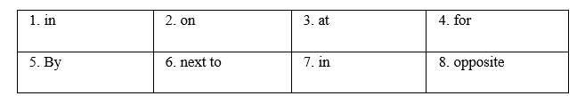 8. Lan’s house is (opposite / by / next to) mine, just across the street.