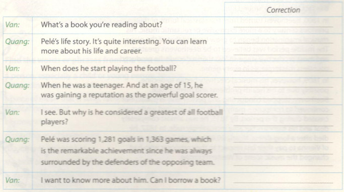 Task 5. Underline ten mistakes in the conversation and correct them. (Gạch chân 10 lỗi sai trong cuộc đối thoại sau và sửa chúng.)