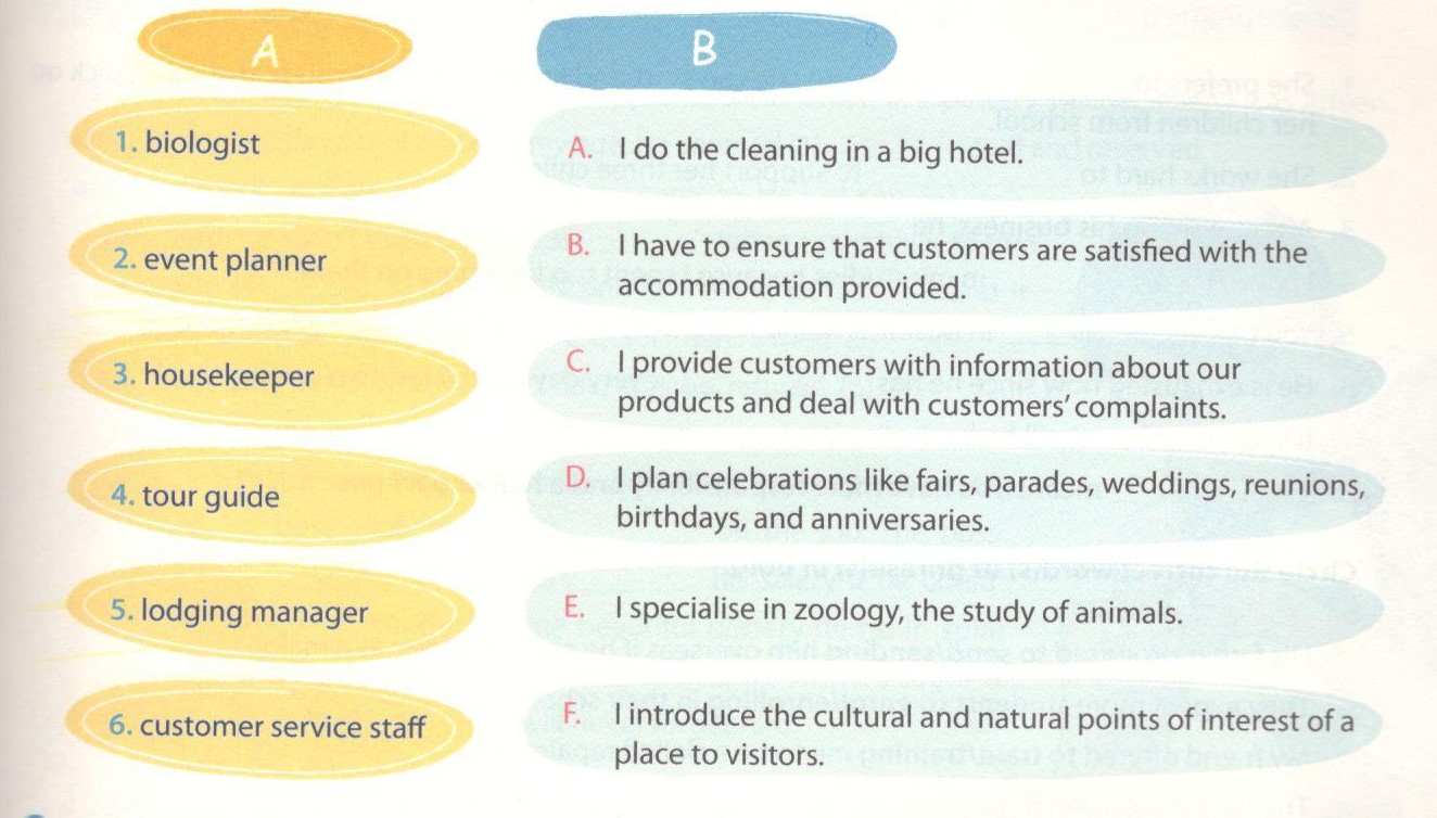 Task 1. Match the jobs in A with their responsibilities in B.