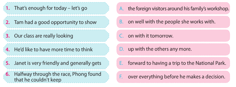 (Hoàn thành những câu sau (1-6) với phần đuôi thích hợp (A-F).)