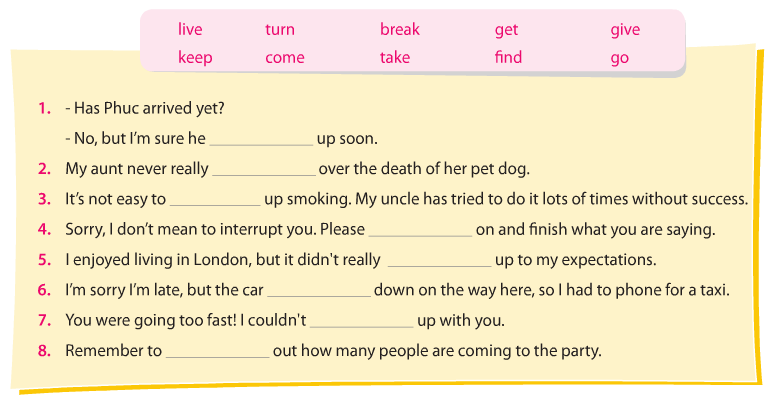 (Hoàn thành những câu sau với từ và cụm từ từ danh sách dưới đây. Thay đổi nếu thấy cần thiết.)