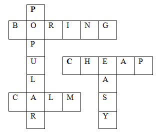 (Hoàn thành trò chơi ô chữ. Sử dụng những từ trái nghĩa với từ được cho trong ô.)