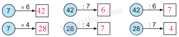 Bước 1: Tính nhẩm dựa vào bảng nhân 7 và bảng chia 7.