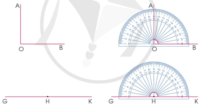 – Đặt thước đo góc sao cho tâm của thước trùng với đỉnh của góc. Vạch 0 của thước nằm trên một cạnh của góc.