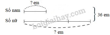 Trường Bản Lườm đã vận động được 36 em có hoàn cảnh khó khăn đến lớp học, trong đó số em nữ gấp 3 lần số em nam. Hỏi trường Bản Lườm đã vận động được bao nhiêu em nam, bao nhiêu em nữ có hoàn cảnh khó khăn đến lớp học ?