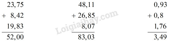 \(23,75 + 8,42 + 19,83\)                  \(48,11 + 26,85 + 8,07\)                 \(0,93 + 0,8 + 1,76\)