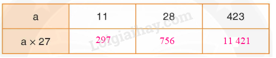 Nếu a = 423 thì a x 27 = 423 x 27 = 11 421