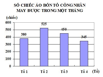 Biểu đồ dưới đây nói về số chiếc áo bốn tổ công nhân may được trong một tháng: