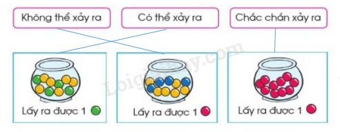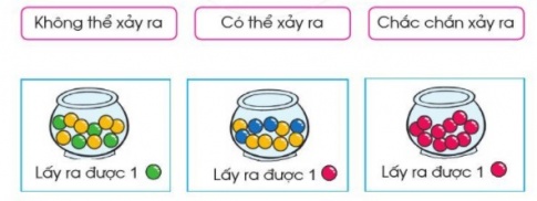 Chọn thẻ ghi từ thích hợp với mỗi hình vẽ: Sử dụng các từ “chắc chắn”, “có thể”, “không thể” để mô tả tình huống trong bức tranh sau.