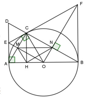 \( \Rightarrow \angle OMN = \angle OHN\left( { = \angle OCN} \right)\)