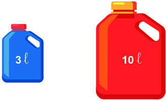 Quan sát hình ta thấy can màu xanh đựng được 3 \(l\), can màu đỏ đựng được 10 \(l\) .