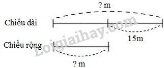 Tính chu vi một mảnh đất hình chữ nhật, biết chiều dài gấp 2 lần chiều rộng và hơn chiều rộng 15m.