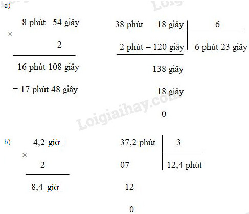 a) 8 phút 54 giây × 2                                 b) 4,2 giờ × 2