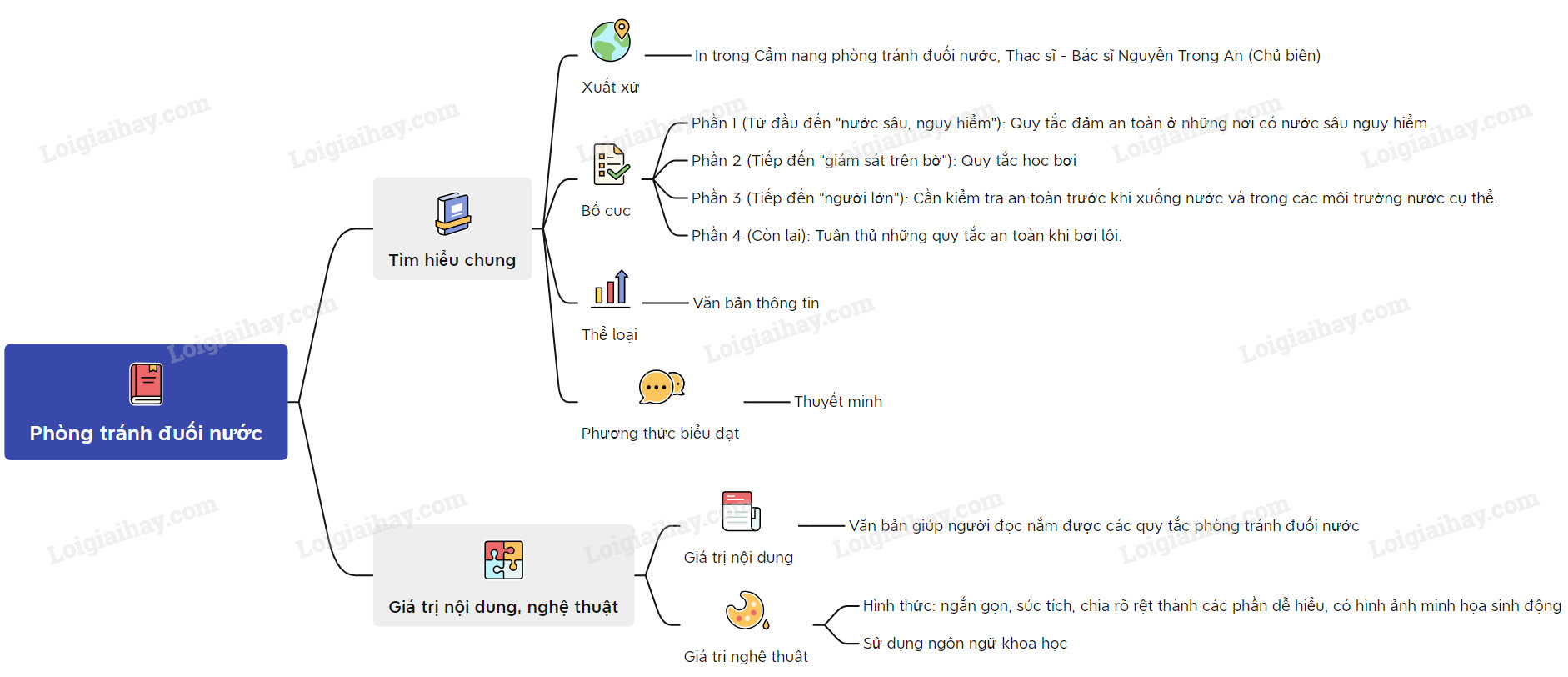 Sơ đồ tư duy văn bản Phòng tránh đuối nước: