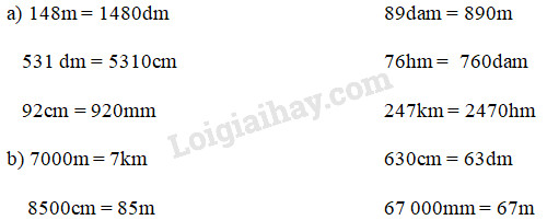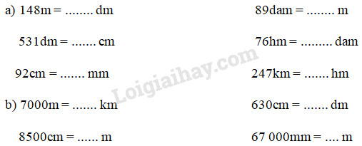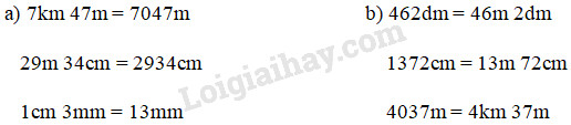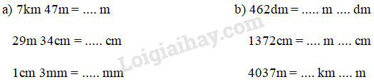 Sử dụng bảng đơn vị đo độ dài để chuyển đổi các số đo :