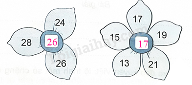 Số ghi ở nhụy hoa thứ nhất là: (28 + 24 + 26) : 3 = 26