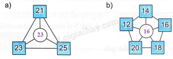 a) Số trung bình cộng của ba số 21, 25 và 23 là: (21 + 23 + 25) : 3 = 23