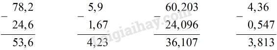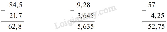 Chú ý: Nếu số chữ số ở phần thập phân của số bị trừ ít hơn số chữ số ở phần thập phân của số trừ, thì ta có thể viết thêm một số thích hợp chữ số \(0\) vào bên phải phần thập phân của số bị trừ, rồi trừ như trừ các số tự nhiên.