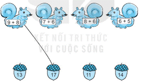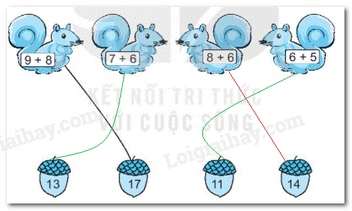 – Tính nhẩm kết quả phép cộng ghi trên mỗi chú sóc rồi nối với số tương ứng trên mỗi hạt dẻ.