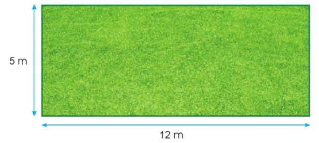Sân chơi nhà cô Thúy có kích thước như hình dưới đây. Cô muốn mua thảm cỏ nhựa trải sân chơi đó, biết rằng mỗi mét vuông thảm cỏ có giá 285 000 đồng. Tính số tiền mua thảm cỏ để trải vừa sân chơi nhà cô Thúy.